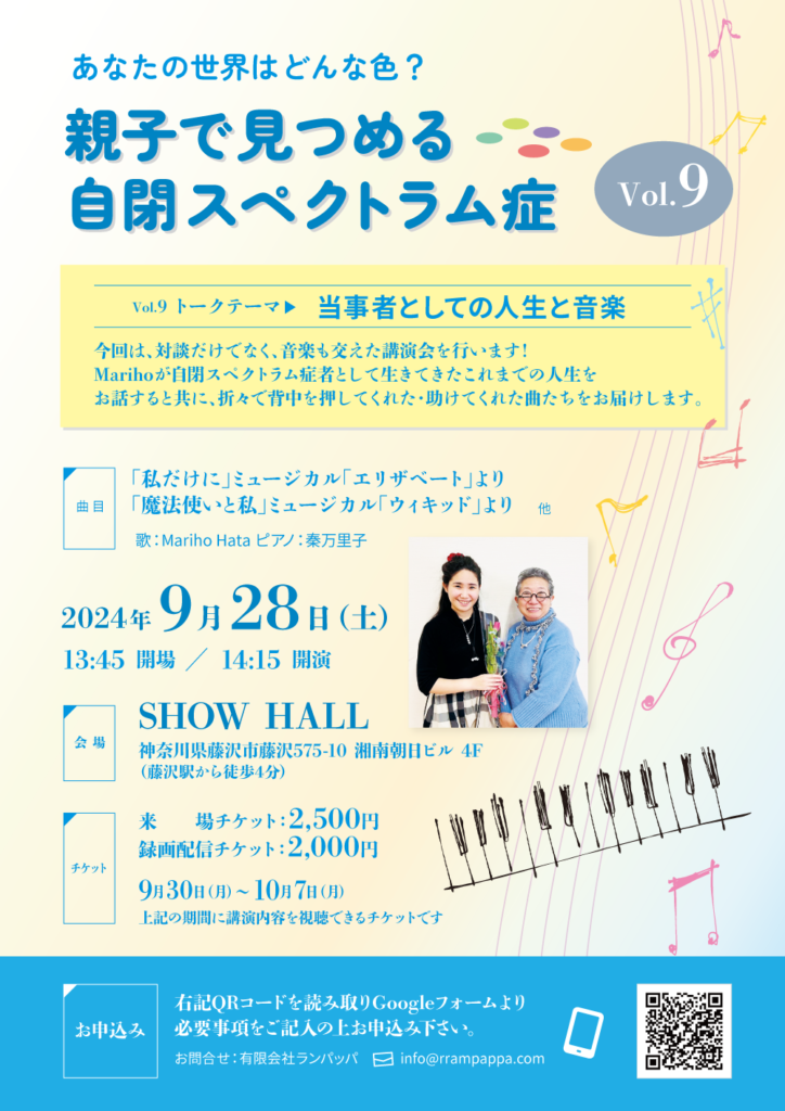 自閉スペクトラム症シンガーと母の講演会Vol.9